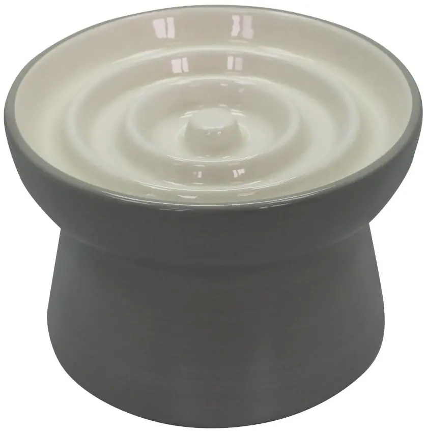 Миска N1 для медленного поедания на высокой ножке керамика серая для животных