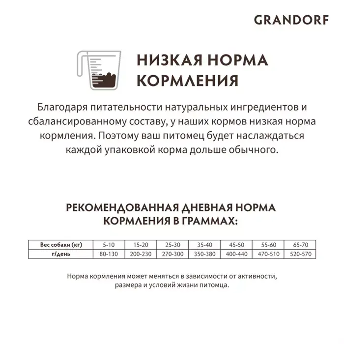 - Невысокая норма кормления ежедневно обеспечивает питомца необходимой энергией, всеми полезными витаминами и минералами.