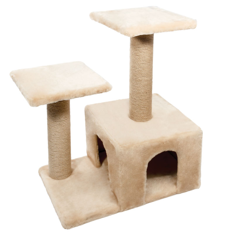 Этот функциональный игровой комплекс для кошек станет любимым местом ваших питомцев. Комплекс состоит из двух джутовых столбиков, каждый диаметром 100мм, с двумя разноуровневыми платформами. Дополняет изделие уютный домик с просторным входом и мягкая игрушка на резинке. Цвет: Цвет: бежевый, серый. Размер изделия: 580*370*690мм.