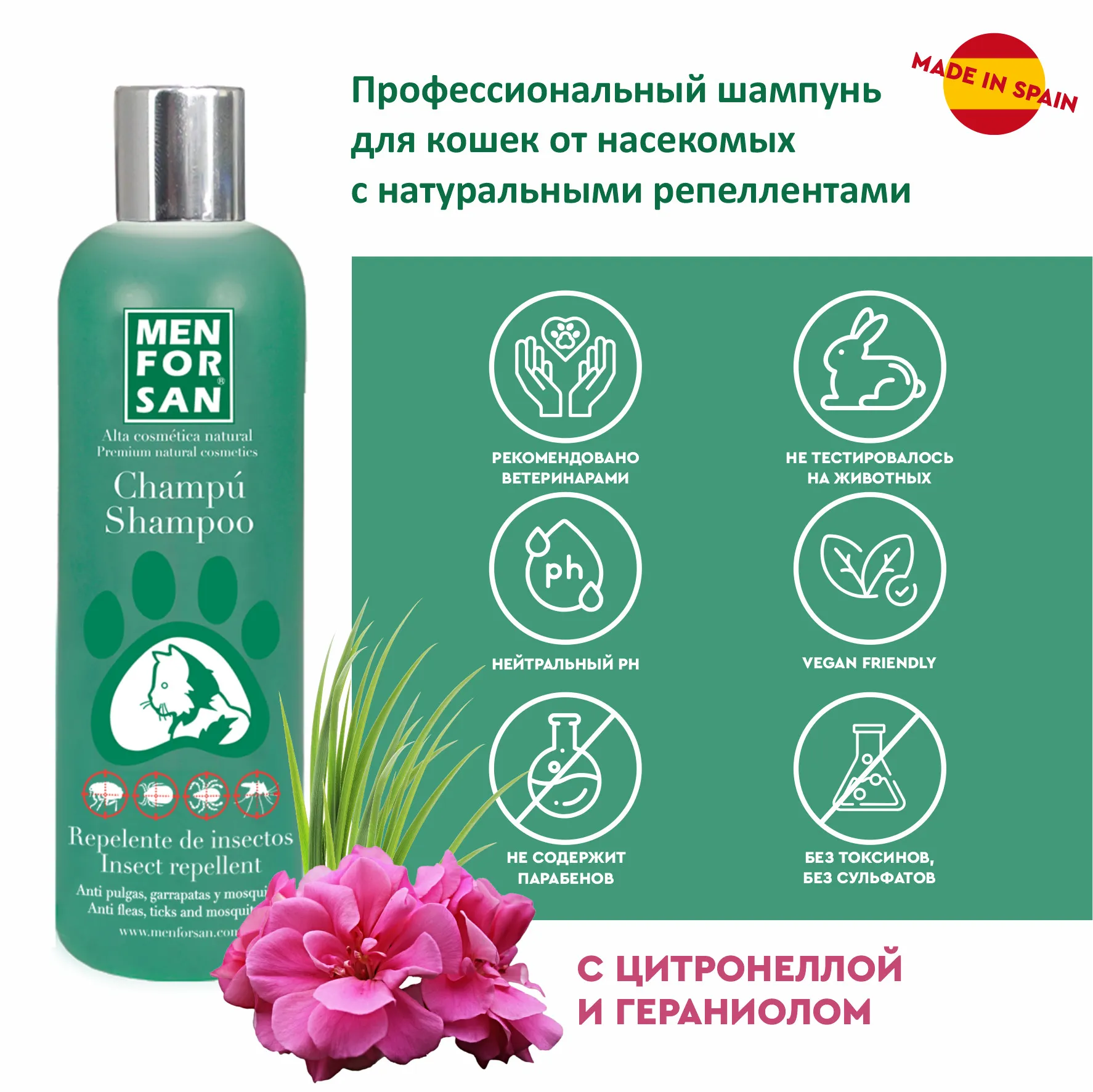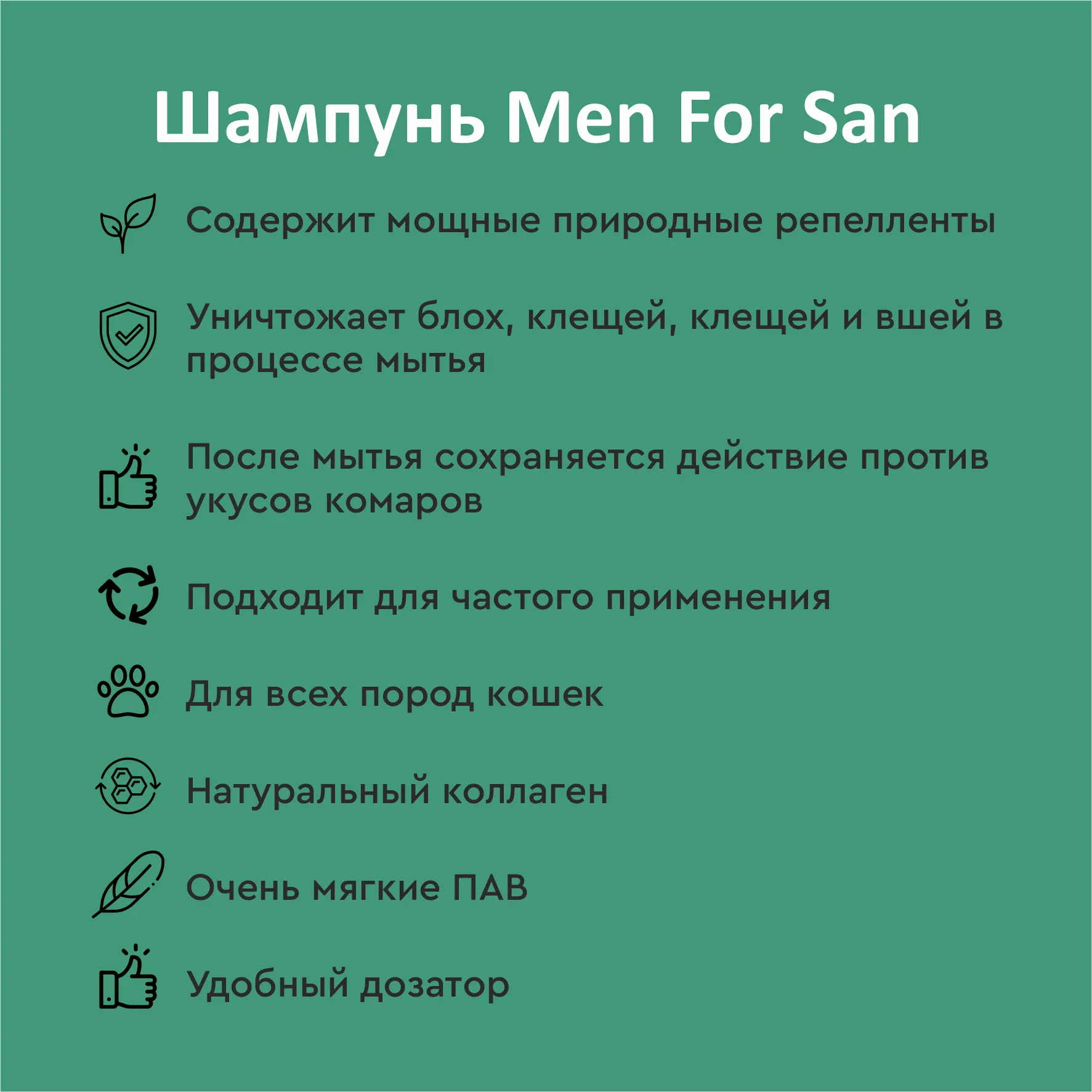 Профессиональный концентрированный шампунь Men for Sum для кошек с цитронеллой и гераниолом.