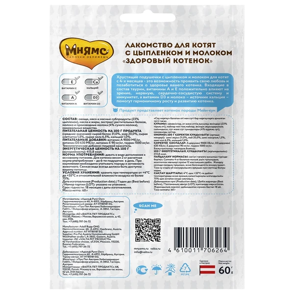 Давать в виде дополнения к основному питанию. Для котенка весом 2 кг расчетная норма употребления — до 6-ти подушечек в день. При кормлении необходимо учитывать породу, возраст и активность животного. Свежая вода всегда должна быть доступна питомцу.