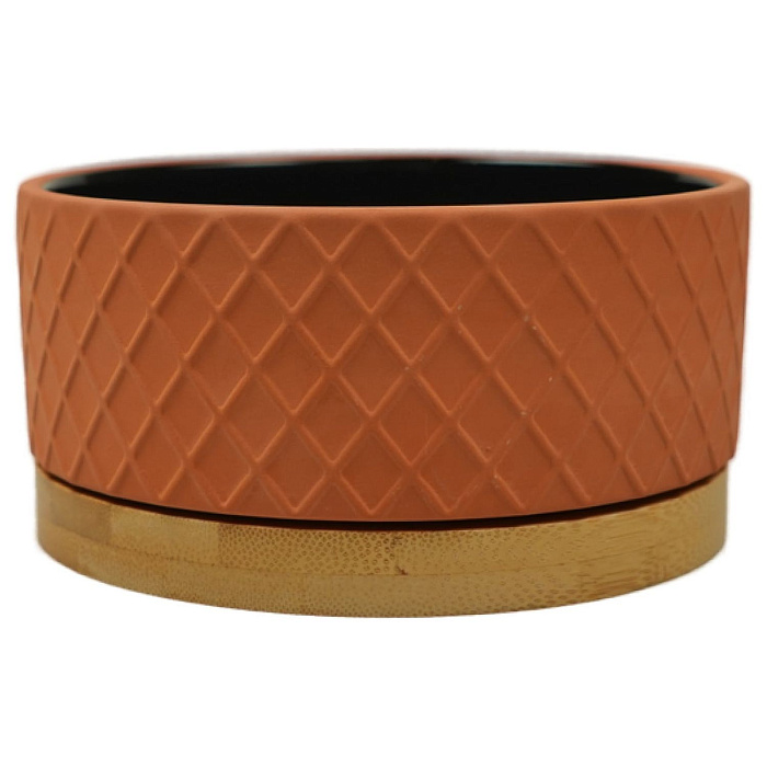 Mr.Kranch Миска "Bamboo" керамическая коричневая на бамбуковой подставке, 530мл