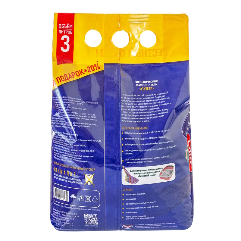 Экологически чистый комкующийся наполнитель. Производится из высококачественной бентонитовой серой глины, которая добывается в предгорьях Саян в Хакасии. Наполнитель прошел специальную санитарно-термическую обработку, что усиливает его адсорбирующие свойства. Впитывает большое количество влаги и склеивается в твердые комочки, которые легко убираются из кошачьего туалета. Также поглощает запахи, замедляет развитие болезнетворных организмов. Наполнитель безопасен для людей и животных. Не имеет запаха. Не пылит. Экономичен в применении.