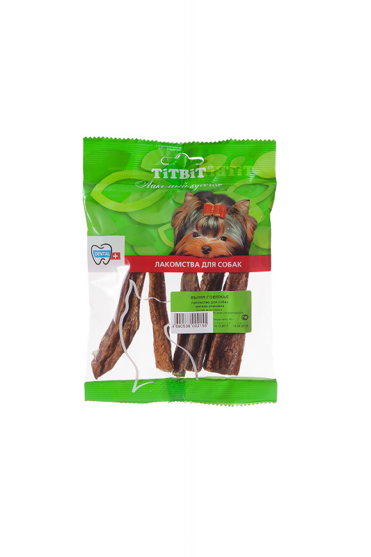 Высушенное говяжье вымя. Нежное лакомство со вкусом натурального молока. Богато эластином и коллагеном, которые отвечают за состояние шерсти и кожи. Имеет большую энергетическую ценность из-за повышенного содержания жира.