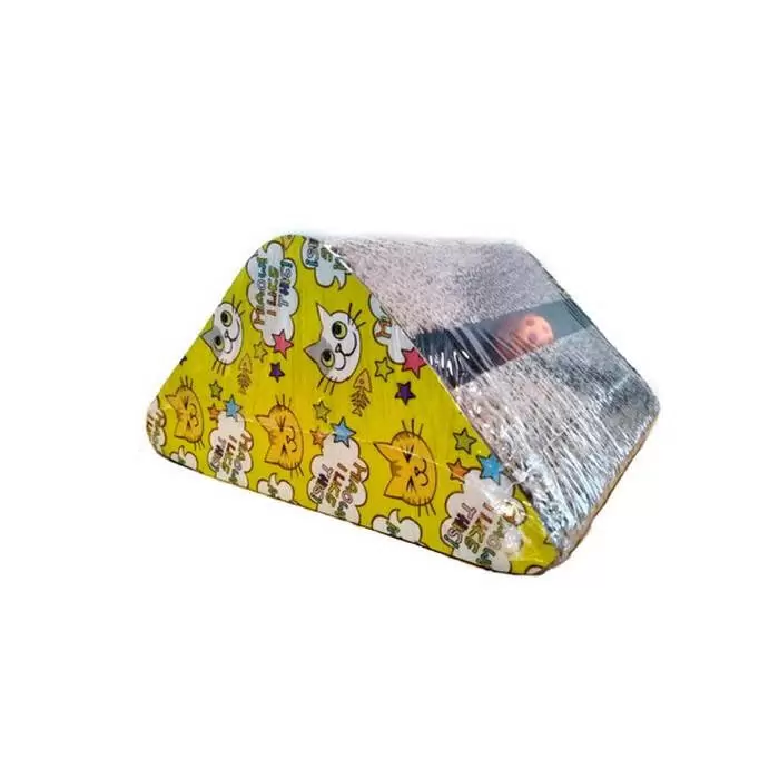 Компактное решение для игр и ухода за когтями: треугольная конструкция образует «тоннель» для пряток и погони за мячиками, а большая рабочая поверхность из гофрокартона мотивирует точить когти и отвлекает от мебели.